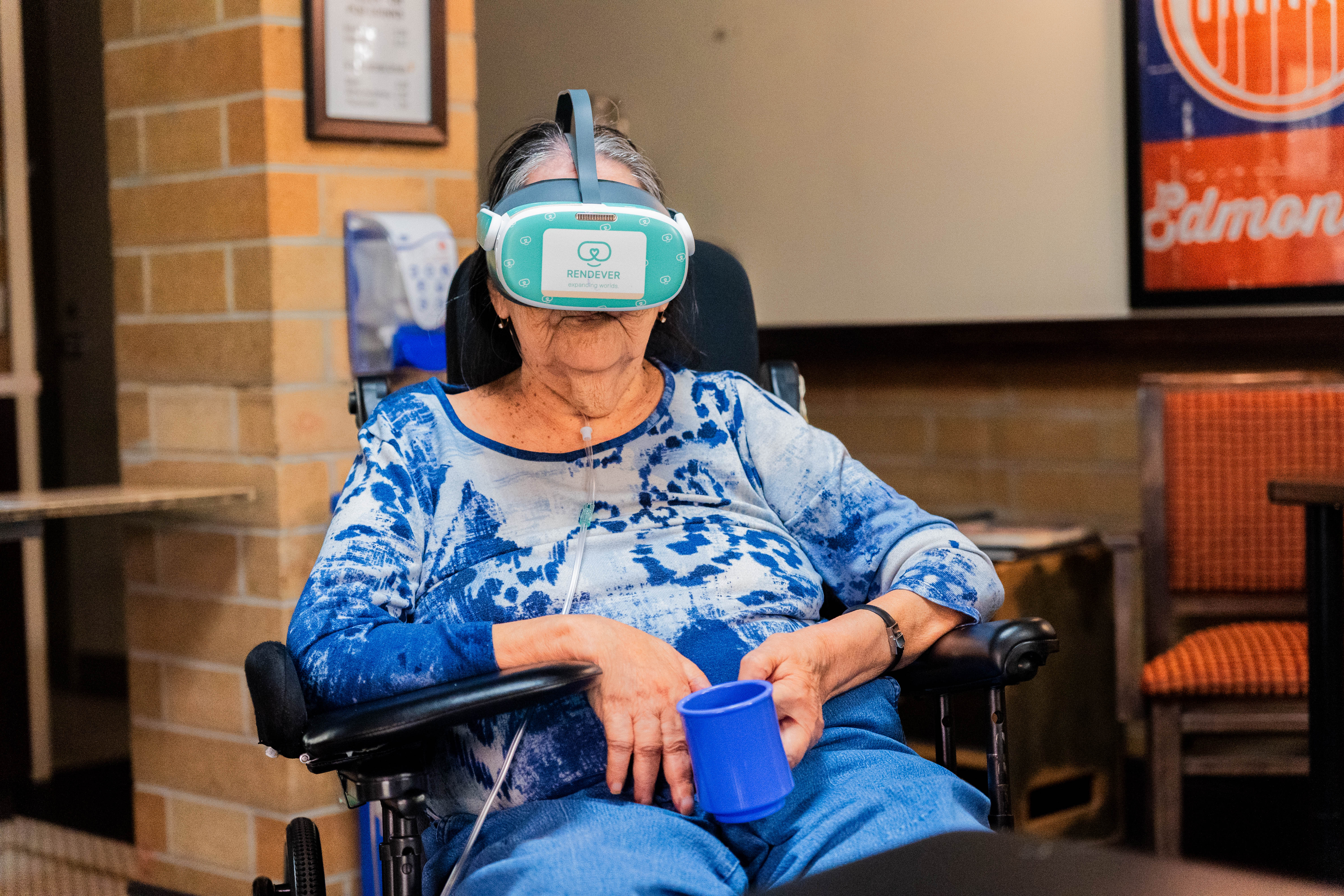 A Lynnwood resident using a Rendever VR headset.